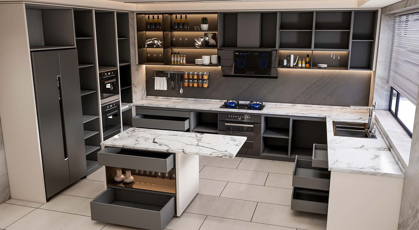 Generally cost more upfront, as they include high-quality finishes, branded hardware, and factory-made components. - Built-in Kitchens: