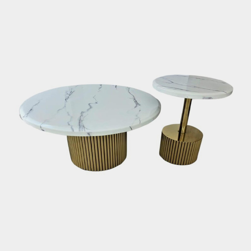 This is Imported  Centre Table with Metal with goldcopper  polish combination with set of two Coffee Table, and it is medium size coffee table with Marble  top.