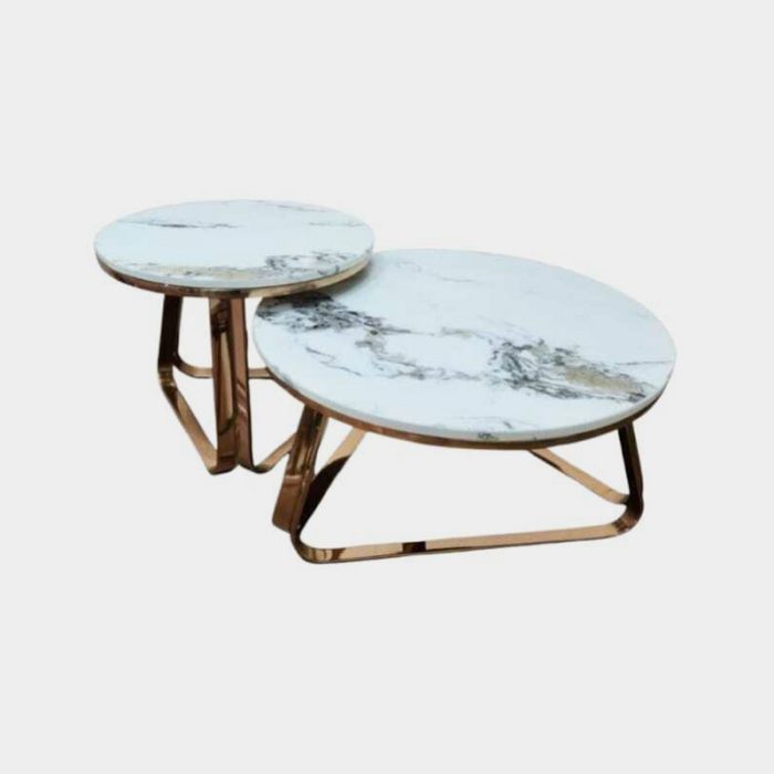 This is Imported  Centre Table with Metal stand with goldcopper  polish, and it is medium size coffee table with Marble  top.