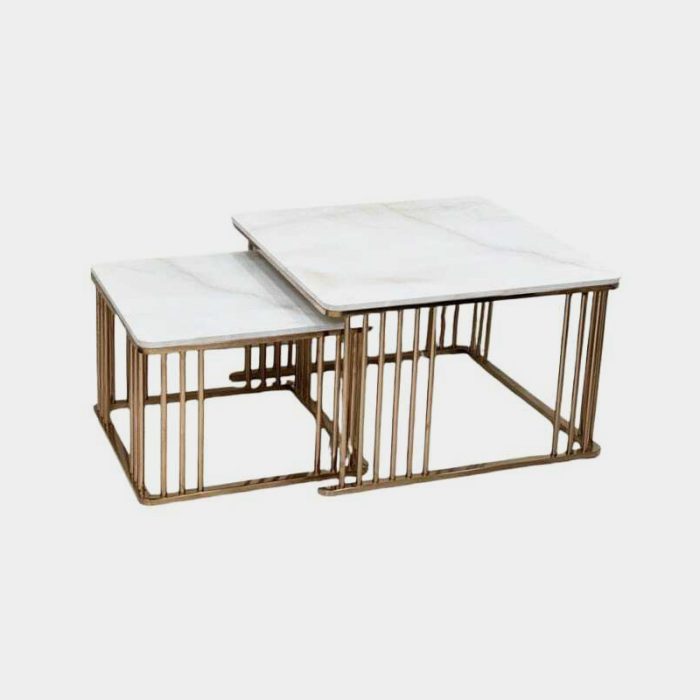 This is Imported  Centre Table with Metal with goldcopper  polish combination with set of two Coffee Table, and it is medium size coffee table with Marble  top.
