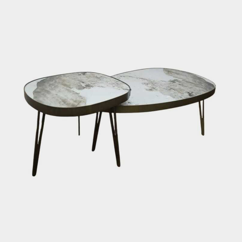 jes is Imported metal 3 in 1 sida table set with golden copper metalic polish. Three in One Side Table Set also can be use as coffee table set, Centre table set.