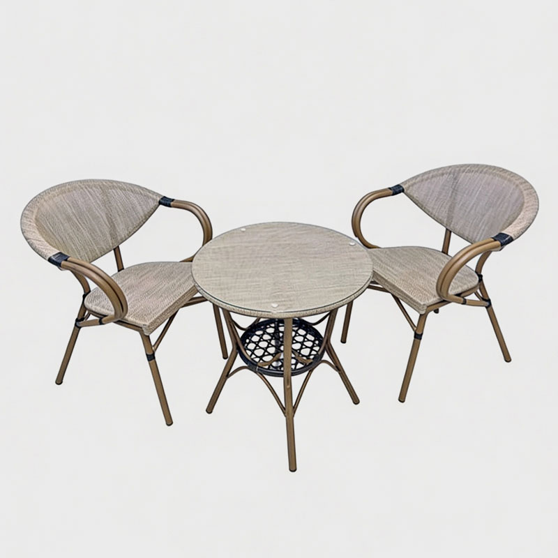 Create a relaxing outdoor seating area with the Liza Garden Set, designed for comfort, convenience, and modern outdoor living. This lightweight outdoor furniture set includes one table and two matching chairs, making it ideal for balconies, gardens, terraces, and patio spaces.