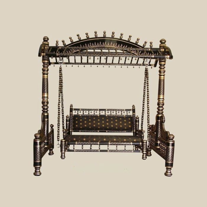 Royal is Indoor Sankheda Swing, 2 Seater Zula made of solid Teak wood, Its originally made at Sankheda village near Baroda, so it is famous as Sankheda Zula.