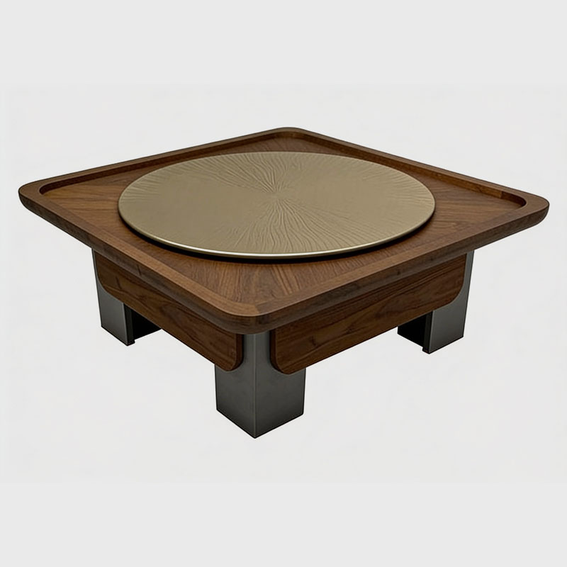 The Vienna Luxury Wooden Center Table is crafted to make a bold yet refined statement in contemporary homes. This designer table features a beautifully finished square wooden tabletop with raised edges, complemented by a striking round metal top centerpiece that adds a touch of sophistication.